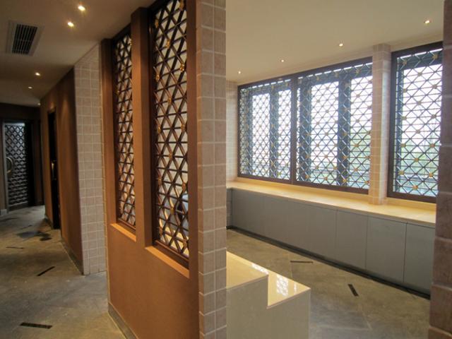 该项目地坪采用大量的“墨玉”水洗板与卫生间的"树挂冰花"白色"花岗岩"及"黑金沙"走边地坪想衬托,加上后房坪的"诺贝尔"平砖,"鸡翅木"与"梨花木"的装饰面板以及"南榆木"东阳花雕的木花格。彰显出自然、高贵、优雅、艺术的气息。