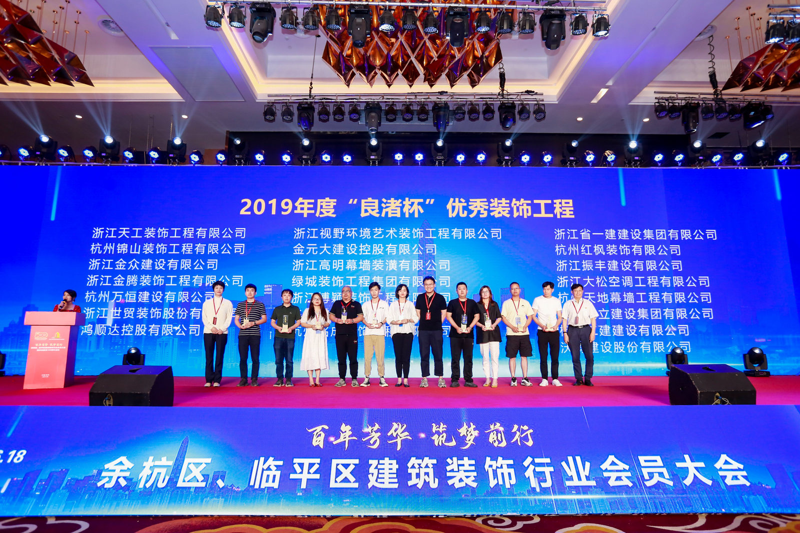 在中国共产党百年华诞来临之际,我司受杭州市余杭区建筑装饰行业协会邀请参加了6月18日举行的“百年芳华 筑梦前行”余杭区、临平区建筑装饰行业会员大会暨庆祝建党100周年活动。我公司分别荣获了2018年“良渚杯”优质装饰工程和2019年“良渚杯”优质装饰工程